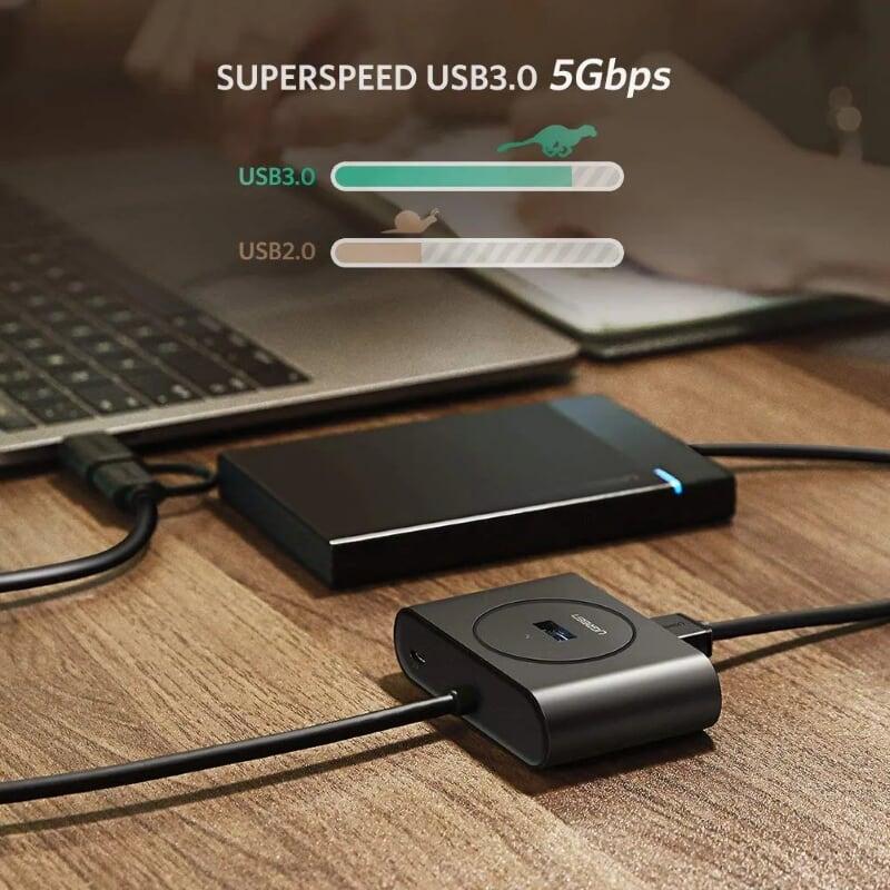 Mua tại TiktokUgreen 40850 1m usb 3.0 hub with type c port đen cr113