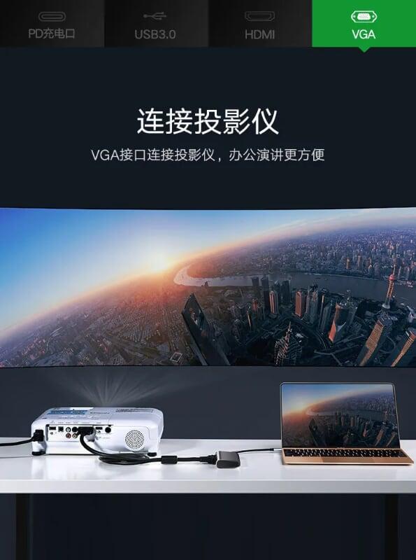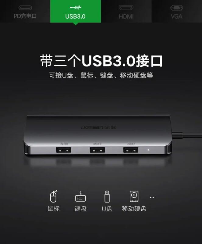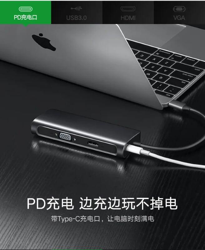 ✨Ugreen UG50319CM163TK Bộ chuyển đổi TYPE C sang 3 USB 3.0 + HDMI + VGA + hỗ trợ nguồn TYPE C - HÀNG CHÍNH HÃNG