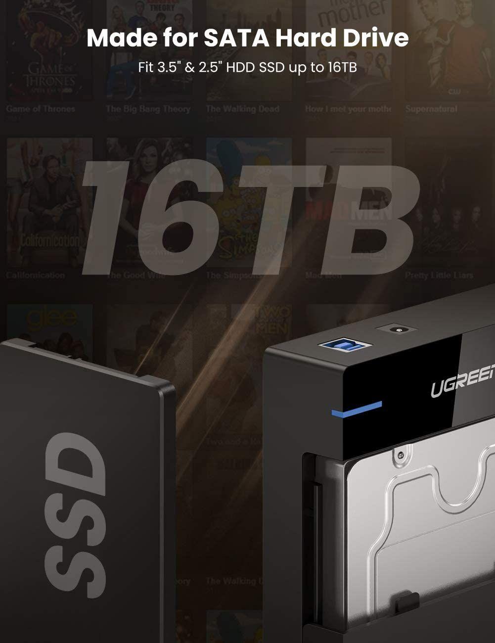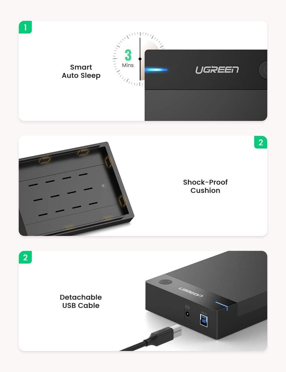 ✨Ugreen UG50423US222TK hỗ trợ 16TB hộp đựng ổ cứng 3.5" 2.5 inch chuẩn SATA ra usb 3.0 có cấp nguồn - HÀNG CHÍNH HÃNG
