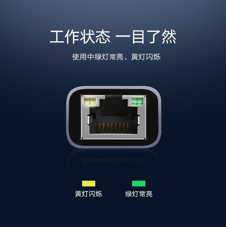 1. *Input: USB 3.0 A Male 2. *Output 1: RJ45 Gigabit Ethernet Port 3. *Output 2: USB 3.0 A × 3 4. *Output 3: USB-C Female DC 5V/2A 5. *Support 10/100 or 1000Mbps network access