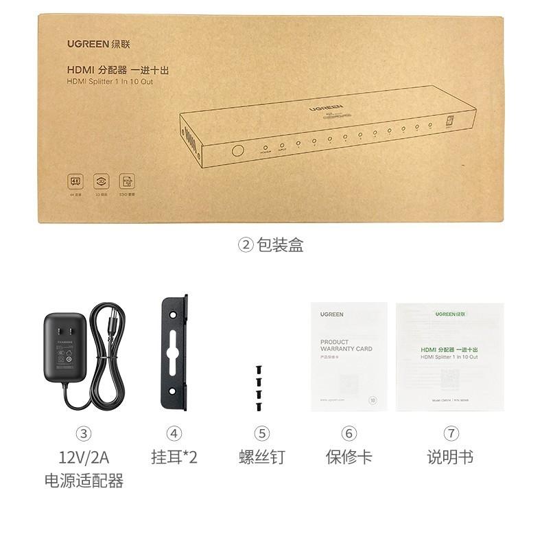 ✨Ugreen UG50949US300TK 1 in 10 Out 4k 30hz 1080p 60hz HDMI Splitter Aluminum alloy with 12v adapter - HÀNG CHÍNH HÃNG