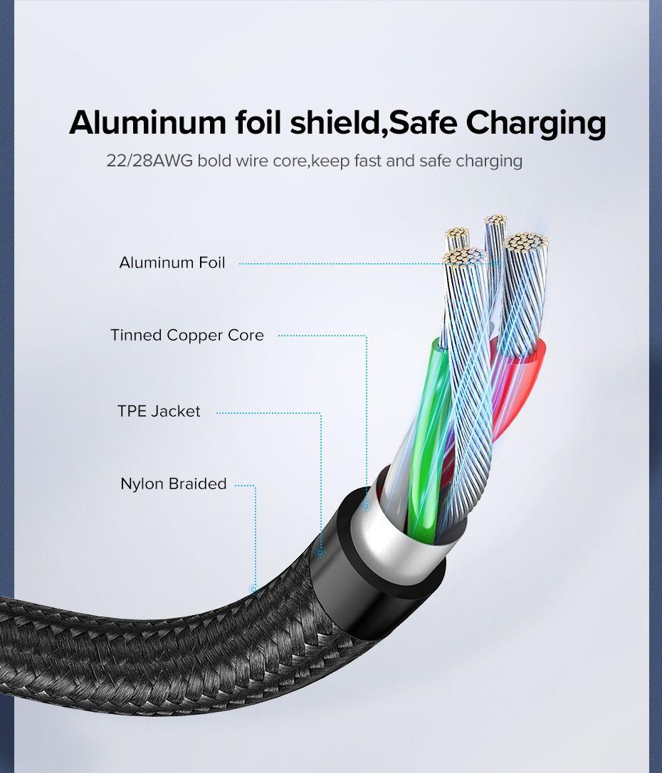1. Charging Speed: 5V/3A 2. Data Transfer Speed: 480Mbps 3. Cable Material: Nylon 4. UGREEN USB-C Cable supports QC 4.0 / 3.0 / 2.0 / 1.0 and Huawei FCP, can charge your devices with up