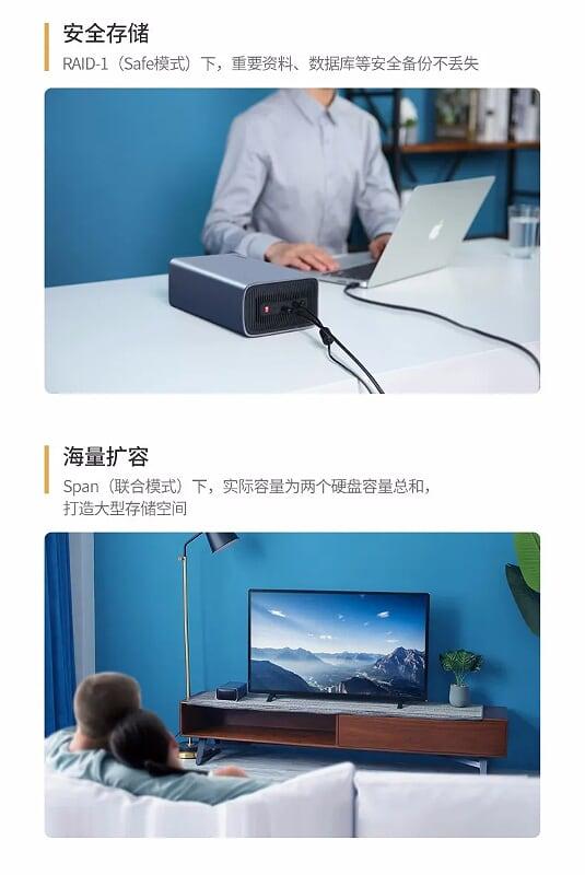 1. Data sync up to 5Gbps 2. 3-Port USB 3.0 for Quick Sync 3. network access at speed up to 1 Gbps 4. Thunderbolt 3 compatible 5. 10/100/1000 Mbps Ethernet