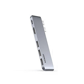 Ugreen 20010919 5 trong 1 màu xám Bộ chuyển type c To 2 * USB 3.0 A + HDMI + RJ45 + PD Converter CM418 10010919