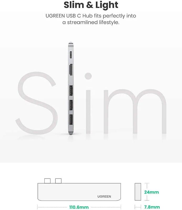 1. Hub đa năng 6 trong 1 Ugreen 80129 giúp bạn mở rộng từ 1 cổng USB Type C sang các cổng khác như HDMI, USB 3.0, khe đọc thẻ nhớ. Giúp bạn kết nối