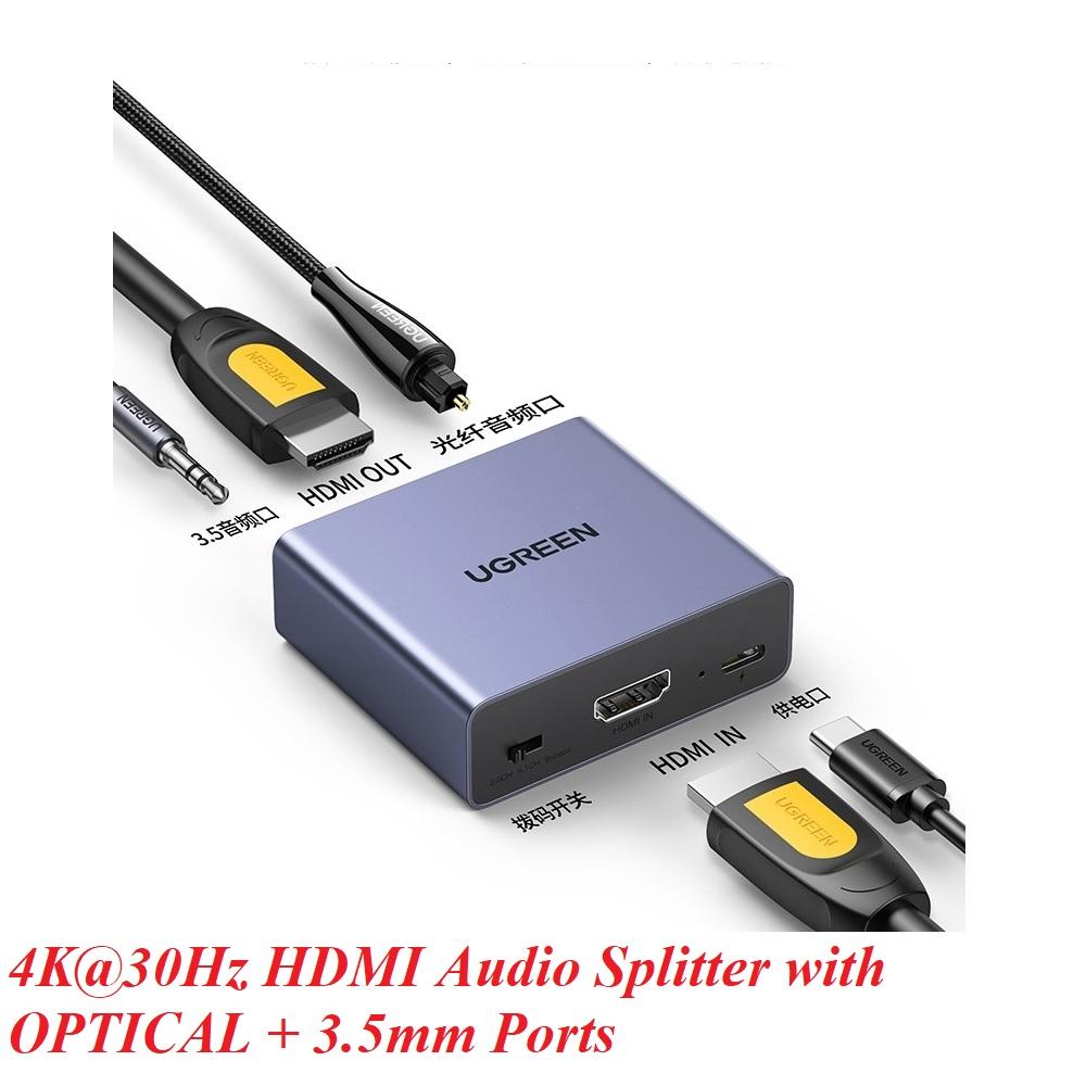 ✨Ugreen UG60649CM531TK 4K @ 30Hz Bộ chia âm thanh hình ảnh HDMI với cổng quang OPTICAL + 3.5mm - HÀNG CHÍNH HÃNG
