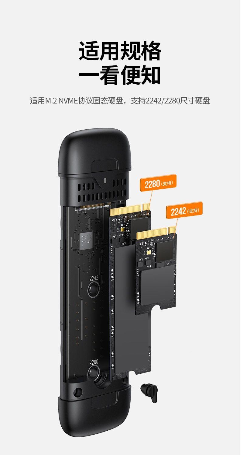1. Color: Gray 2. Material: Aluminum 3. SATA interface 4. Super fast 10Gbps transmission 5. Plug and play with tool-free installation 6. Standard M.2 hard drive NVME 7. USB type C + USB-A connector 8.25 x