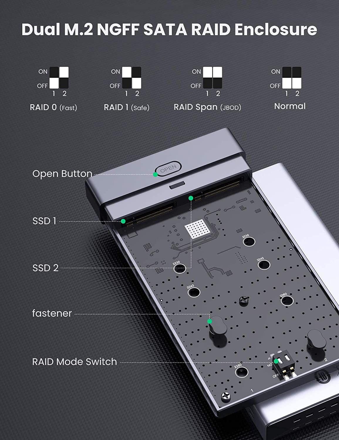 ✨Ugreen UG70534CM299TK usb type c 3.1 gen2 hộp đựng 2 ổ cứng ssd M.2 B-KEY SATA - NGFF Raid 6Gbps - HÀNG CHÍNH HÃNG