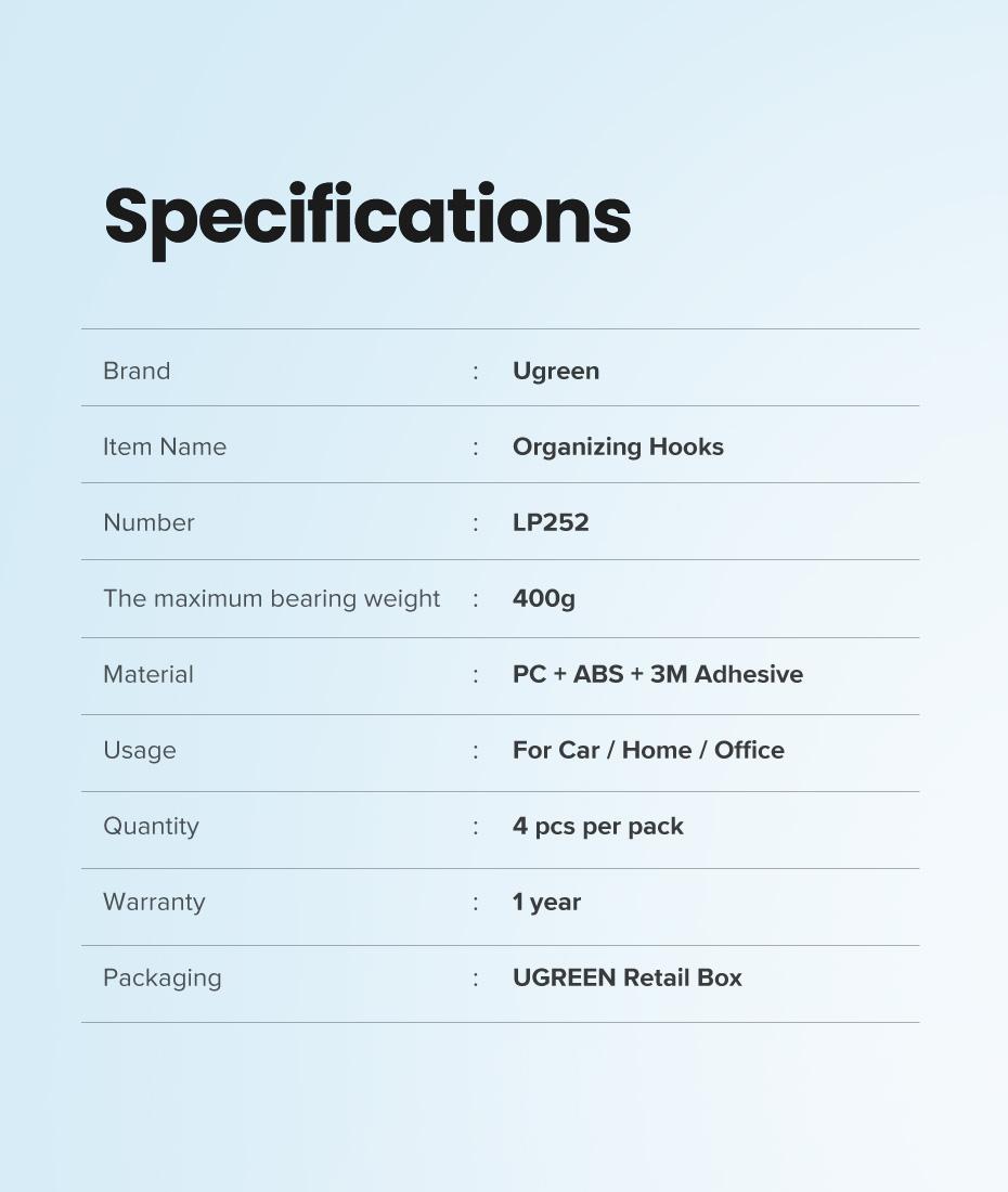 ✨Ugreen UG80199LP252TK 4 cái Móc treo Màu Đen tiện dụng trên xe hơi - văn phòng - nhà - HÀNG CHÍNH HÃNG