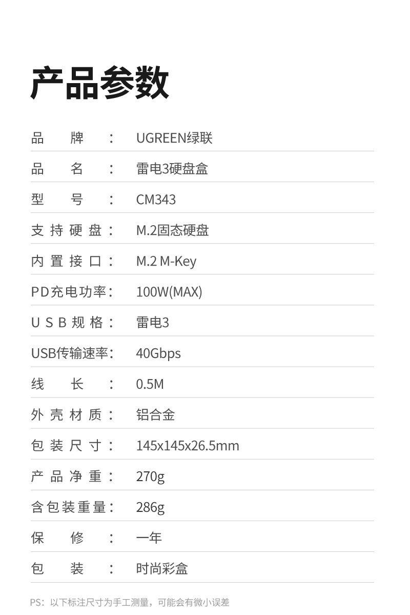 1. Color: Deep Gray - Deep Gray 2. Connection cable length: 50CM 3. Input: USB-C 4. Output: M.2 B-key 5. Support data transfer rate up to 6Gbps 6. Shell material: Aluminum alloy 7. Operation LED: