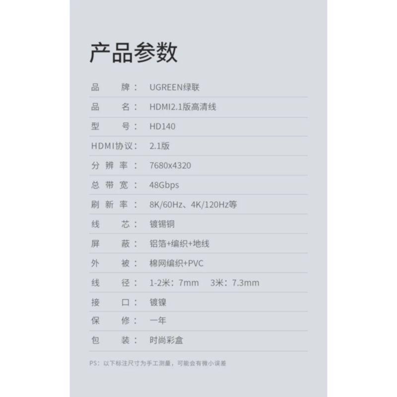 ✨Ugreen UG80405HD140TK 5M 2.1 8K 60Hz 48Gbps 4k 120 hz màu đen Cáp HDMI 2.1 độ phân giải siêu Cao - HÀNG CHÍNH HÃNG