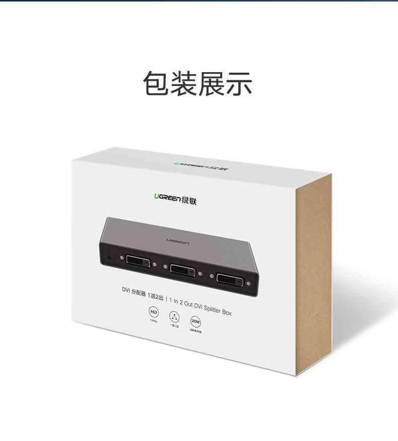 1. Brand: UGREEN 2. Code: 80647 - CM202 3. Color: Gray 4. Input: DVI 5. Output: 2 DVI 6. Standard: DVI-D [DVI Digital] 7. Power: 5V 8. Contact Material : Nickel 9. Housing Material :