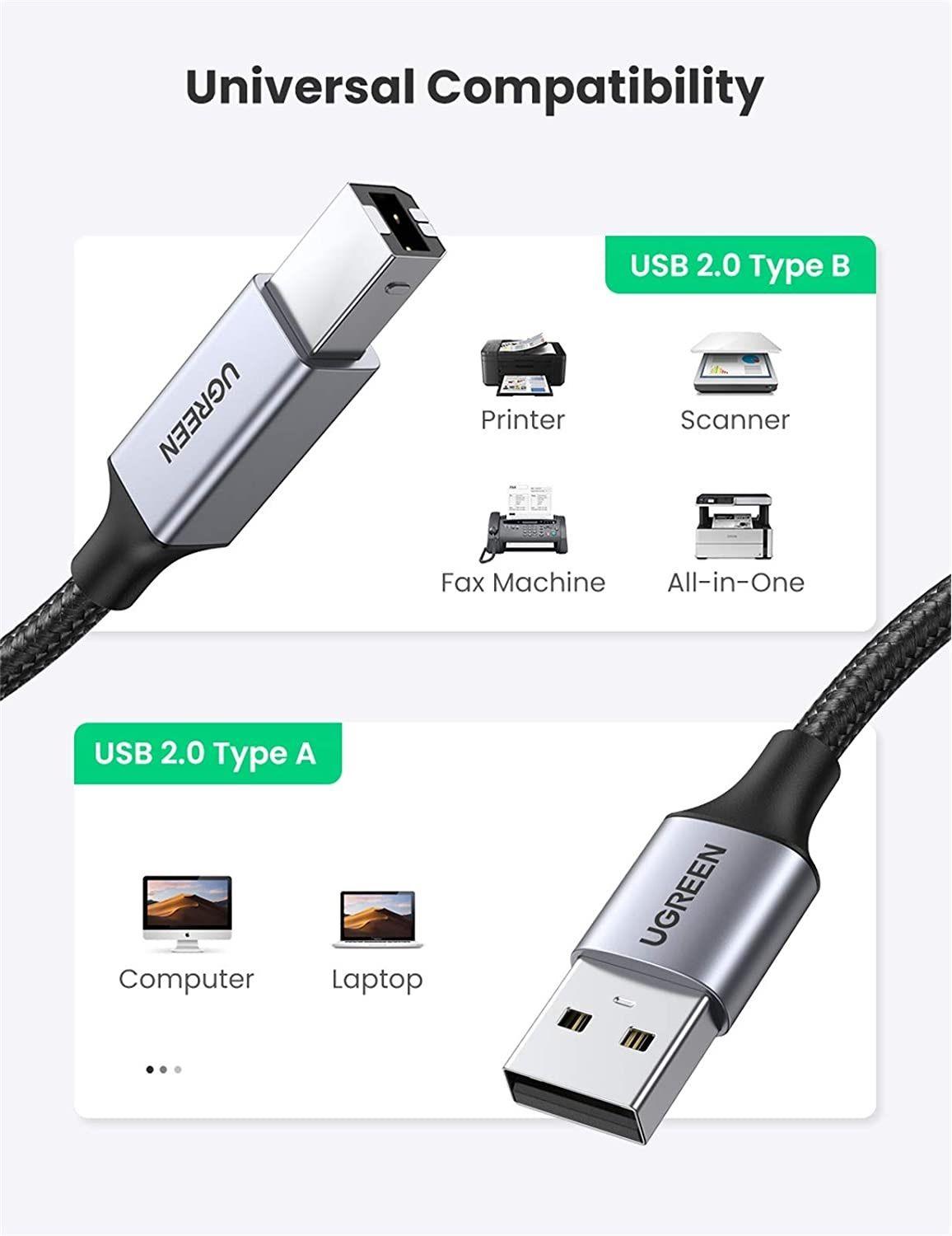 - Good quality ugreen usb 2.0 male to usb b male cable 10,000 + Triple shields, gold-plated connectors and pure copper nuclei ensure maximum conductivity and loss of minimum data