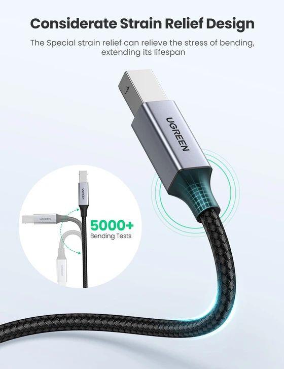 ✨Ugreen UG80808US370TK 3M màu xám đầu nhôm cáp USB type C ra usb B máy in dây dù - HÀNG CHÍNH HÃNG