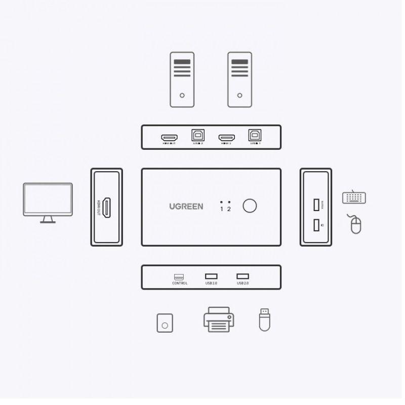 ✨Ugreen UG90478CM571TK 4K 60Hz Bộ chuyển tín hiệu 2 CPU dùng 1 Màn hình cổng HDMI KVM Switch - HÀNG CHÍNH HÃNG