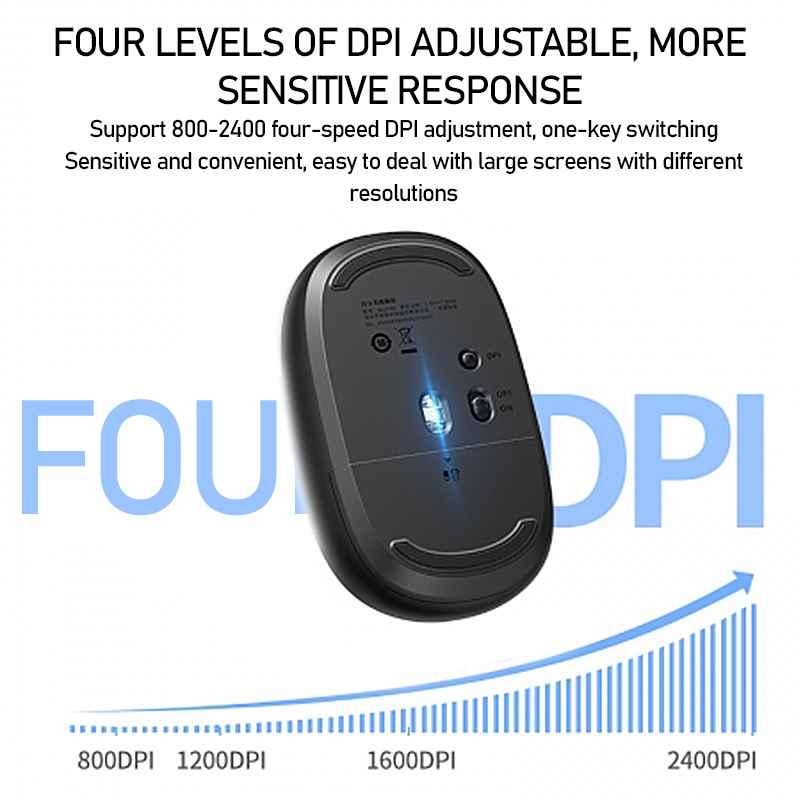 1.Operating distance: 15m/49.2ft 2.DPI: 800/1200/1600/2000/4000 3.Function: 6 buttons 4.Button lifespan: About 3 million clicks 5.Wi-Fi receiver operating frequency: 2.4 GHz bluetooth + 2.4ghz 6.Operating voltage: 1.5V 7.Operating current: 40mA 8.Insert AA batteries (product NOT included) 9.Compatible
