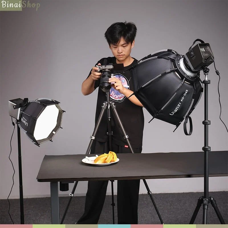 - Đèn led Ulanzi U200 được thiết kế với 200 bóng led đổi màu 4 mặt tự do theo dạng mở 120 độ với dải nhiệt màu rộng, CRI cao, công suất 20W mang lại ánh sáng dịu nhẹ.