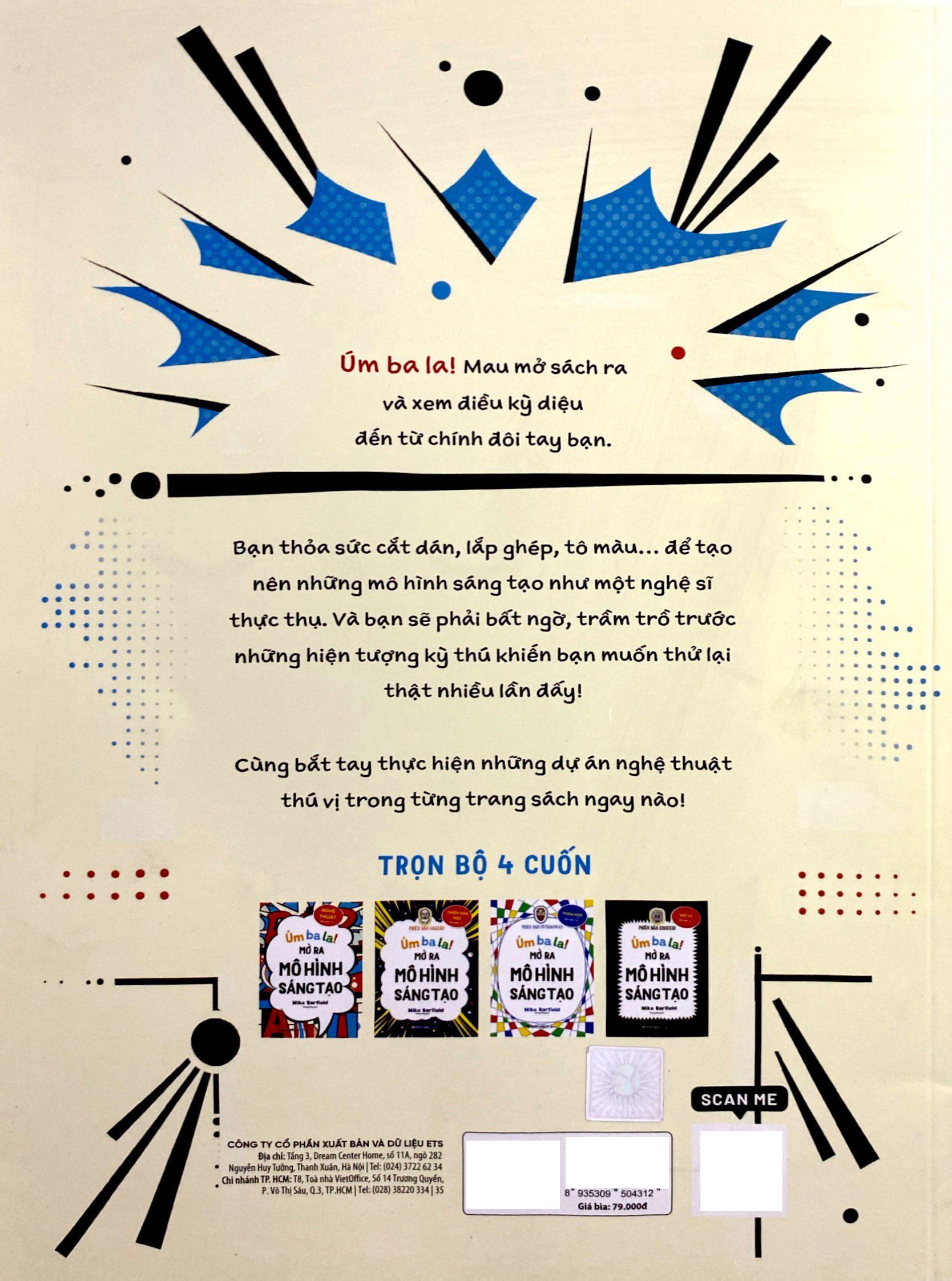 Bộ sách Úm ba la! Mở ra mô hình sáng tạo bao gồm 4 cuốn: Nghệ thuật, Thiên văn học – phiên bản Galileo, Vật lý - phiên bản Einstein, Toán học - phiên bản Pythagoras