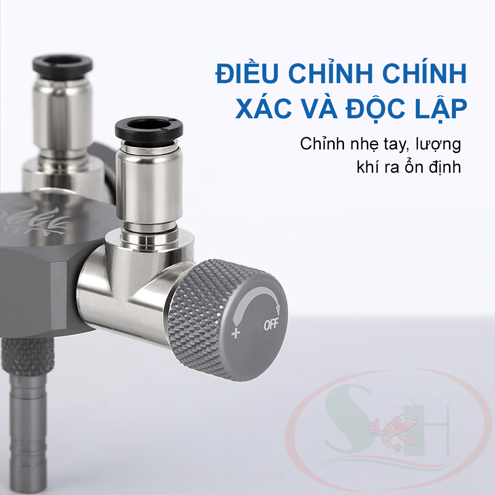 Mua tại TiktokVan chia co2 Week Aqua Splitter được làm từ chất liệu nhôm nguyên khối CNC cao cấp, giúp việc chia khí co2 dùng cho nhiều bể trở nên dễ dàng và cực kỳ tiện dụng. Đầu xoay tinh chỉnh nhẹ nhàng giúp khí ra đều đặn và chính xác cho từng nhu cầu riêng biệt. HƯỚNG DẪN SỬ DỤNG VAN CHIA CO2 WEEK AQUA SPLITTER 2 / 3 / 6 ĐẦU: