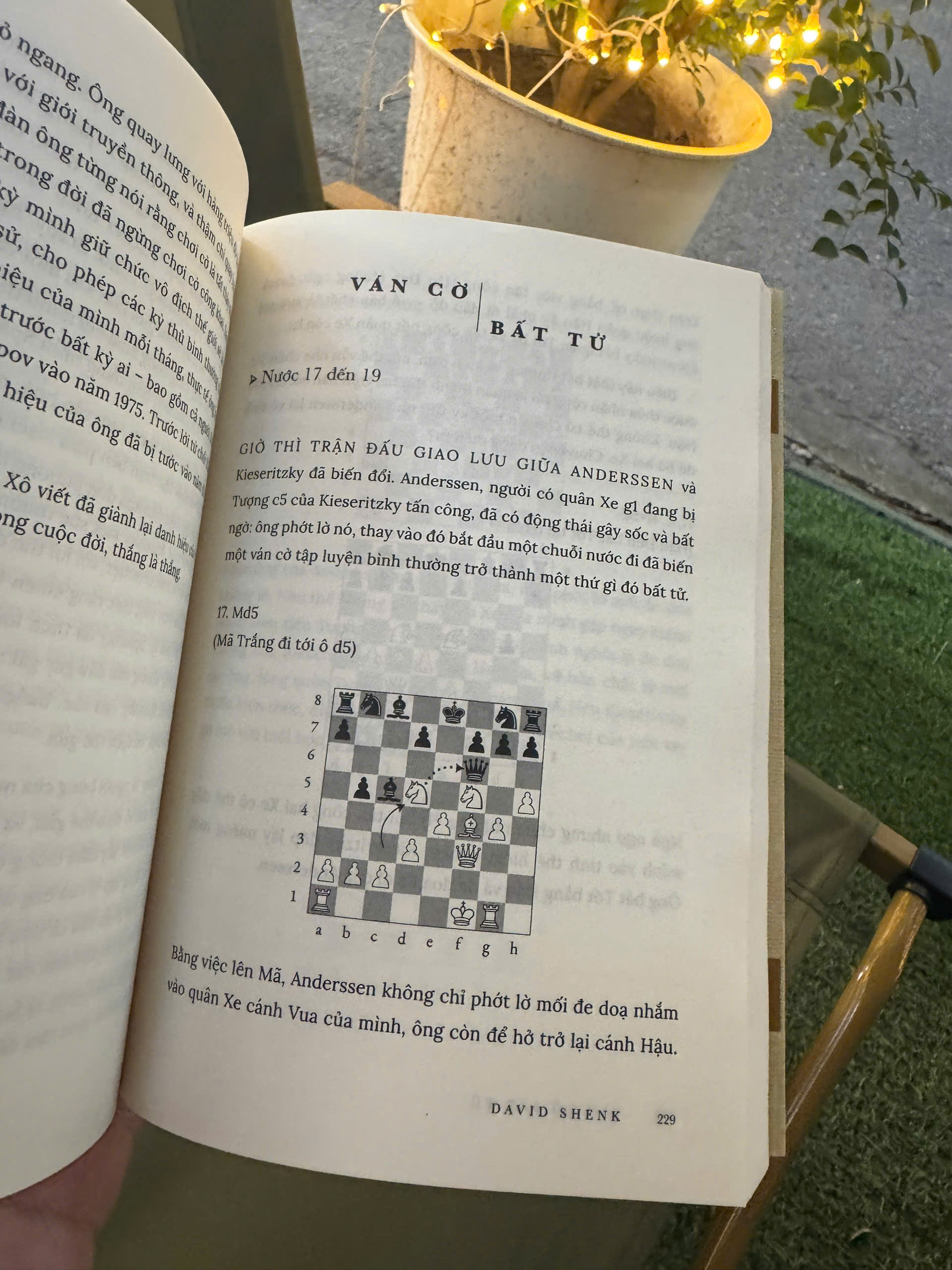 Đây không chỉ là một cuốn sách về cờ vua mà còn là một hành trình khám phá đầy mê hoặc về cách trò chơi này đã định hình sâu sắc sự hiểu biết của chúng ta về chiến tranh, nghệ thuật, khoa học và cả bộ não con người. Cuốn sách được chia thành 3 phần Khai-Trung-Tàn cuộc, với mỗi chương phân tích các nước đi và phong cách chơi của Ván cờ Bất tử (The Immortal Game) huyền thoại giữa hai kỳ thủ bậc thầy Anderssen vs Kieseritzky vào năm 1851, tạo nên một trải nghiệm vừa mang tính giáo dục sâu sắc, vừa giải trí cao, phù hợp cho cả người mới lẫn những người đã đam mê cờ vua lâu năm.
