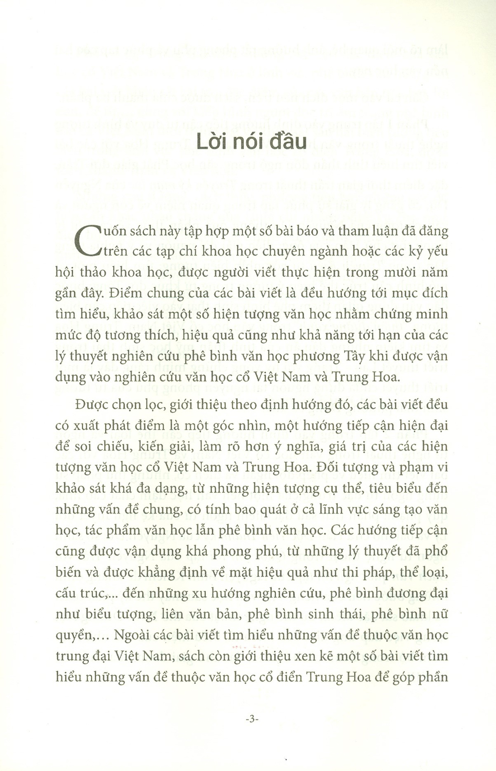 Những con đường, cách thức, phương tiện hay những góc độ tiếp cận khác nhau chẳng qua cũng chỉ nhằm phục vụ cho mục đích hướng tâm, đó là tiếp tục khám phá, khẳng định giá trị của tinh hoa văn học dân tộc trong bối cảnh giao lưu, tiếp biến giữa văn học Việt Nam với các nền văn học trong khu vực và trến thế giới. Hành trình khám phá, khẳng định những giá trị đó không bao giờ kết thúc và mỗi một nỗ lực tham gia, đóng góp đều xuất phát từ mong muốn được ghi nhận như là một dấu chân trong nhiều dấu chân tiếp nối. (Trích Lời Nói Đầu)