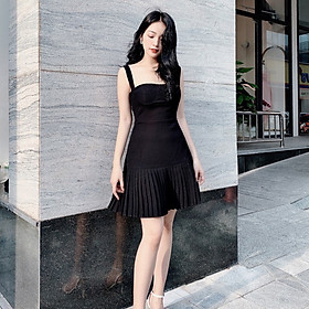 ✨Váy 2 dây cúp ngực đuôi váy xếp ly siêu tôn dáng màu đen