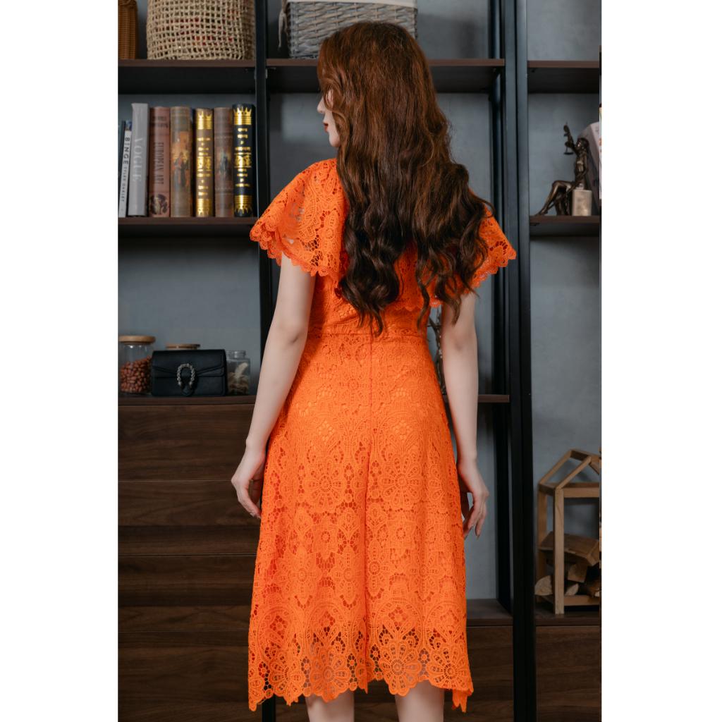 Váy Ren Màu Cam Bèo Cổ 23V005