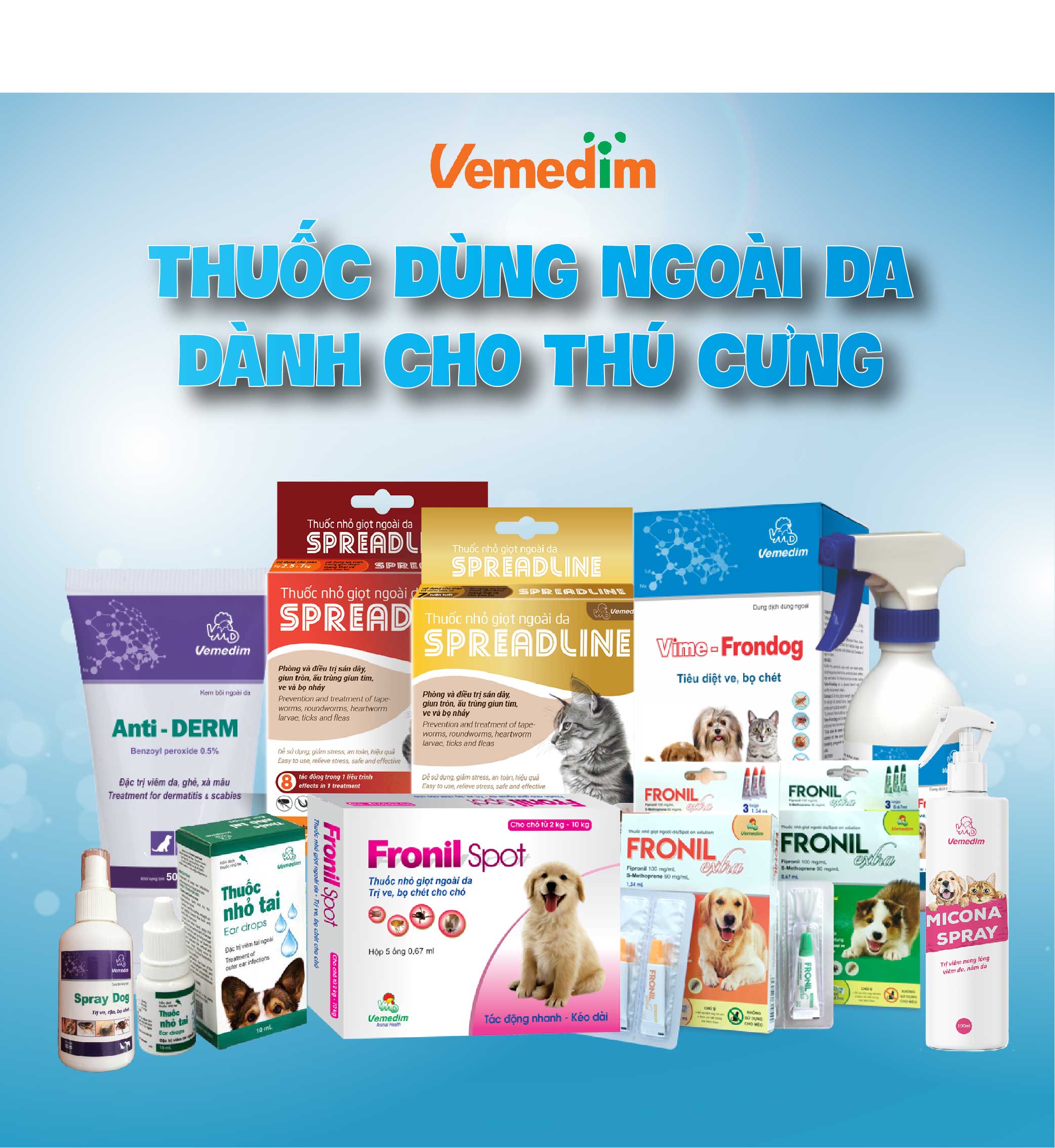 Vemedim Vime - Frondog 250ml | Xịt Ve Rận Bọ Chét Cho Chó Mèo Khử Khuẩn Chuồng Nuôi CÁCH DÙNG Vạch ngược lông, xịt vào da ở những vùng ve, rận, bọ chét thường