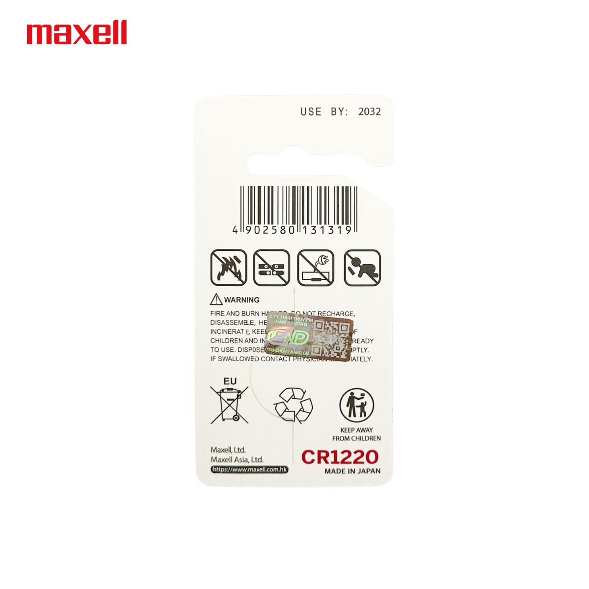 Maxell CR1220 _Pin lithium 3.0v Made in Japan (Call 0909 911 096-0903 352 340, Www.pinnuoinguon.vn)
