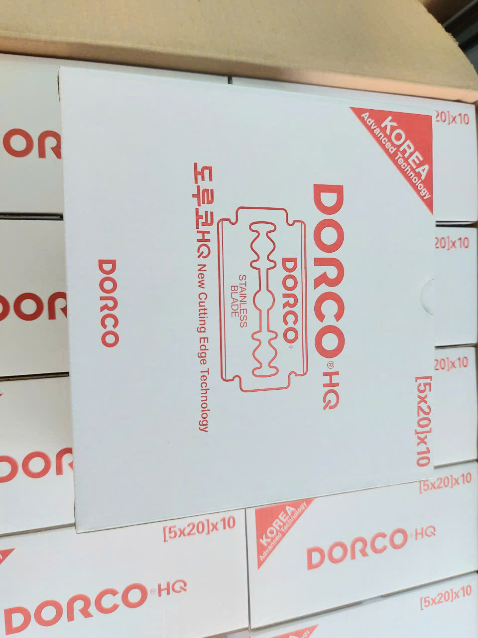 Vỉ 100 hộp lưỡi lam Dorco HQ màu đỏ ( Dao lam Dorco Đỏ) là sản phẩm lưỡi dao Dorco chính hãng Hàn Quốc Sản phẩm có độ mỏng lưỡi dao là 0.075mm giúp lưỡi dao tăng độ sắc bén. Lưỡi lam Dorco HQ màu đỏ đươc sản xuất bao phủ kim loại nhiều lớp gia tăng độ bền, chống lại sự ăn mòn, tạo cảm giác thoải mái cho người sử dụng. Cấu tạo lưỡi dao 4 lớp: Lớp ngoài cùng là lớp màng nhựa bôi trơn cực mỏng, lớp tứ 2 là lớp màng mỏng chống ăn mòn. Lớp tứ 3 là lớp màng gia tăng độ bền và lớp trong cùng là lớp thân lưỡi độ cứng cao. Công dụng trong nghành điện thoại dùng để cao film ,cắt film Ngoài ra rất được ưa chuộng trong làm đẹp : cạo mặt,cạo râu,cạo chân mày,,,