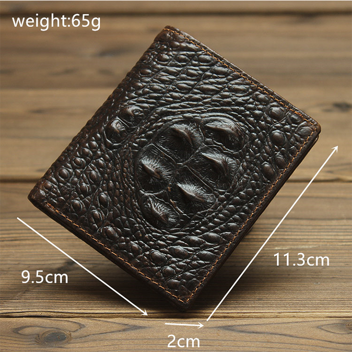 - Ví nam được làm bằng chất liệu da cá sấu cao cấp tạo kiểu dáng lạ mắt, sang trọng. - Thiết kế nhỏ gọn, thời trang, dạng ví nam xếp đôi, có nhiều ngăn