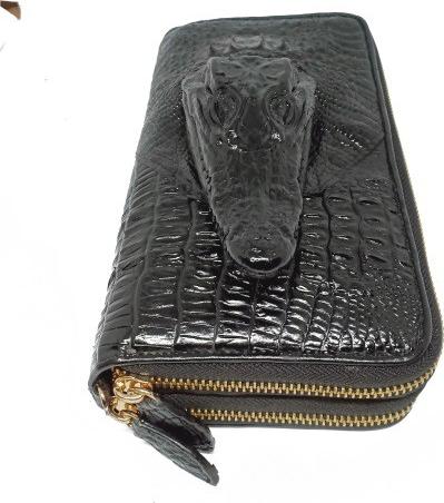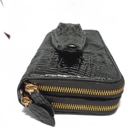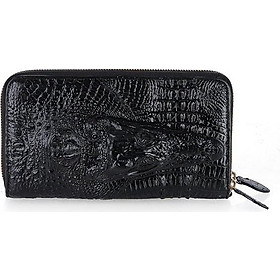 - Tên sản phẩm: Ví nữ da cá sấu Huy Hoàng nhiều ngăn đầu cá sấu màu đen HT3725.