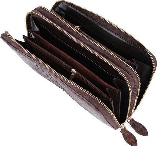 Ví/Bóp nữ da bò Huy Hoàng vân cá sấu nhiều ngăn màu nâu 3134