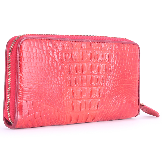 Ví da cá sấu cầm tay 2 ngăn khoá kéo | Ví cầm tay màu nâu đỏ