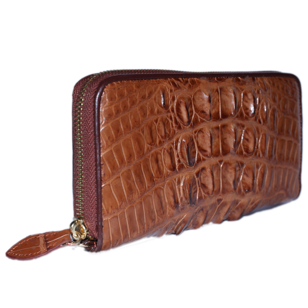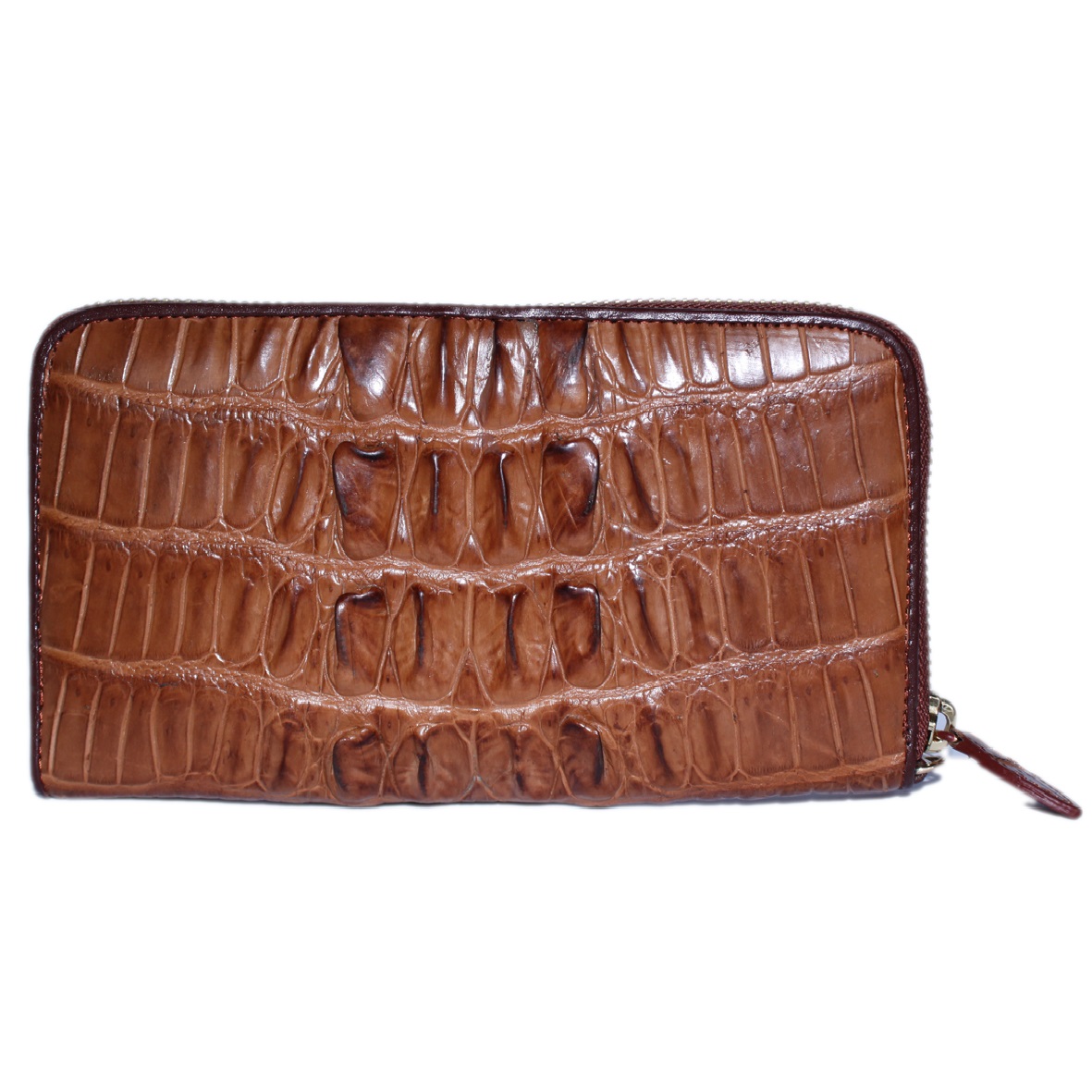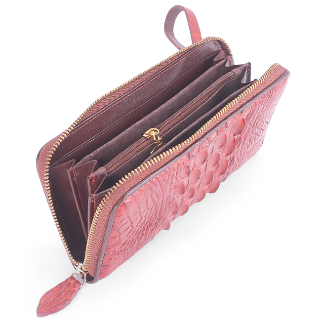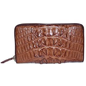 Ví da cá sấu cầm tay 2 ngăn khoá kéo | Ví cầm tay màu nâu đỏ