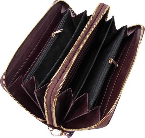 Ví/Bóp nữ da bò Huy Hoàng vân cá sấu nhiều ngăn màu nâu 3134