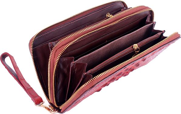 Ví da cá sấu cầm tay 2 ngăn khoá kéo | Ví cầm tay màu nâu đỏ