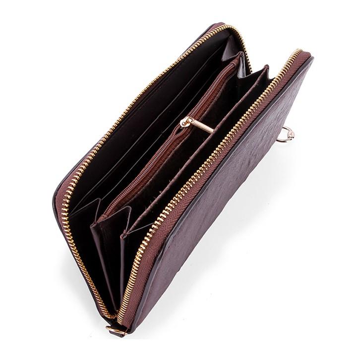 ✨Ví nữ da đà điểu Huy Hoàng 1 khóa vip màu nâu đất HP3432