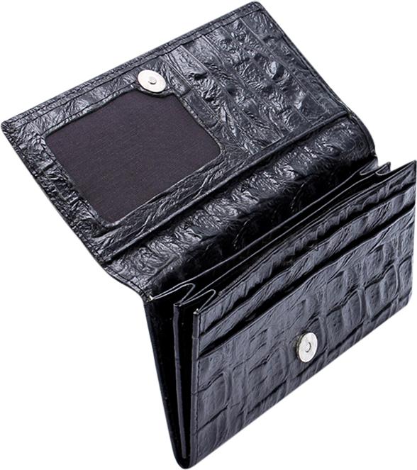 Ví/Bóp nữ da bò vân cá sấu Huy Hoàng 2 gấp màu đen 3116