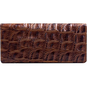 Ví/Bóp nữ da bò Huy Hoàng vân cá sấu lớn 3 gấp màu nâu đỏ 3154