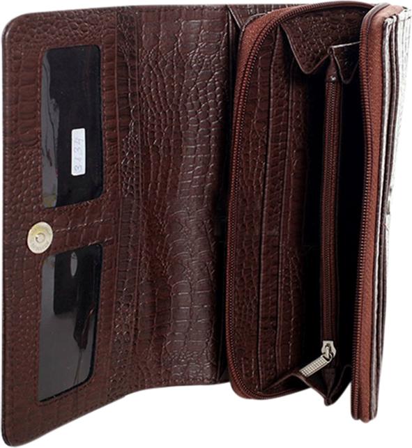 Ví/Bóp nữ da bò Huy Hoàng vân cá sấu lớn 3 gấp màu nâu đất 3153