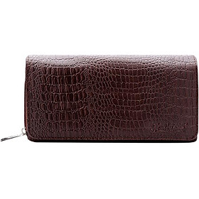 Ví/Bóp nữ da bò Huy Hoàng vân cá sấu lớn 3 gấp màu nâu đỏ 3154