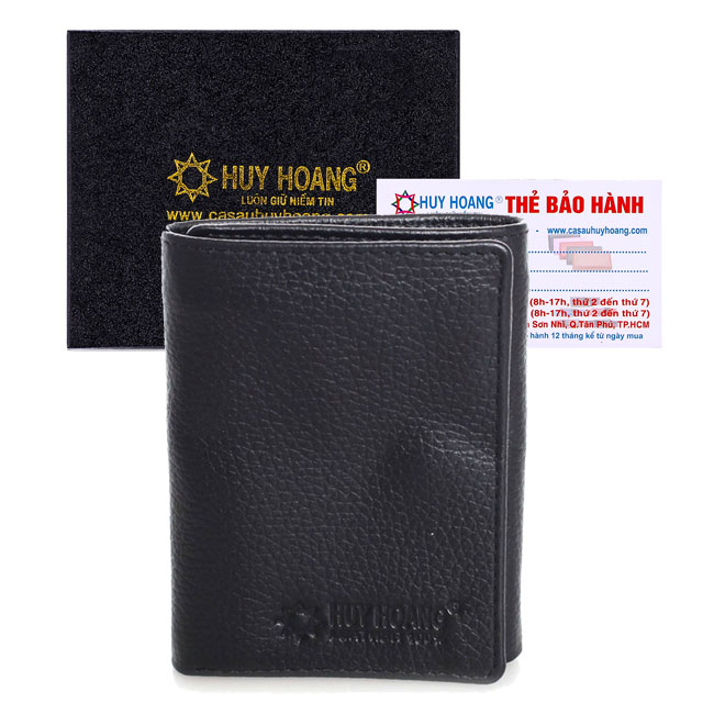 Ví/Bóp nữ da bò cao cấp Huy Hoàng 3 gấp màu đen 3126