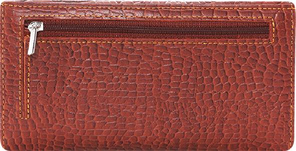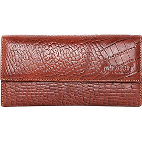 Ví/Bóp nữ da bò Huy Hoàng vân cá sấu lớn 3 gấp màu nâu đỏ 3169