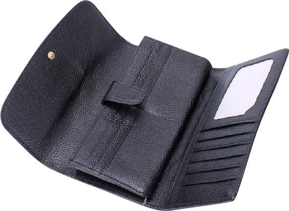 Ví/Bóp nữ da thật cao cấp Huy Hoàng 3 gấp màu đen 3112