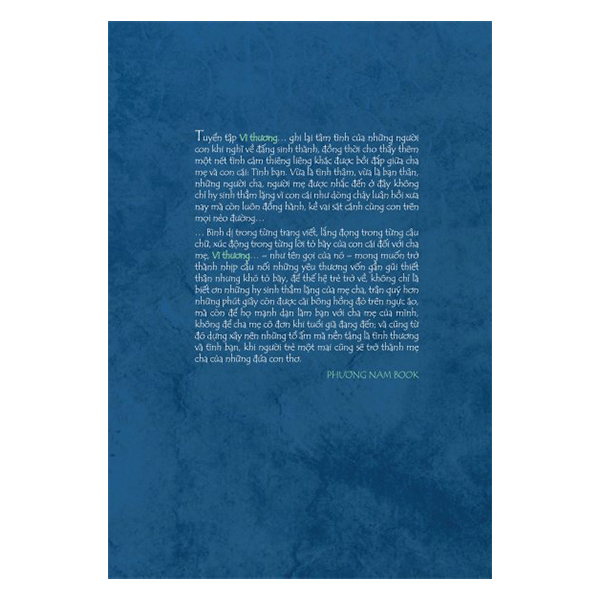 Tuyển tập Vì thương… ghi lại tâm tình của những người con khi nghĩ về đấng sinh thành, đồng thời cho thấy thêm một nét tình cảm thiêng liêng khác được bồi đắp giữa cha mẹ và con cái: Tình bạn. Vừa là tình thâm, vừa là bạn thân, những người cha, người mẹ được nhắc đến ở đây không chỉ hy sinh thầm lặng vì con cái như dòng chảy luân hồi xưa nay mà còn luôn đồng hành, kề vai sát cánh cùng con trên mọi nẻo đường…