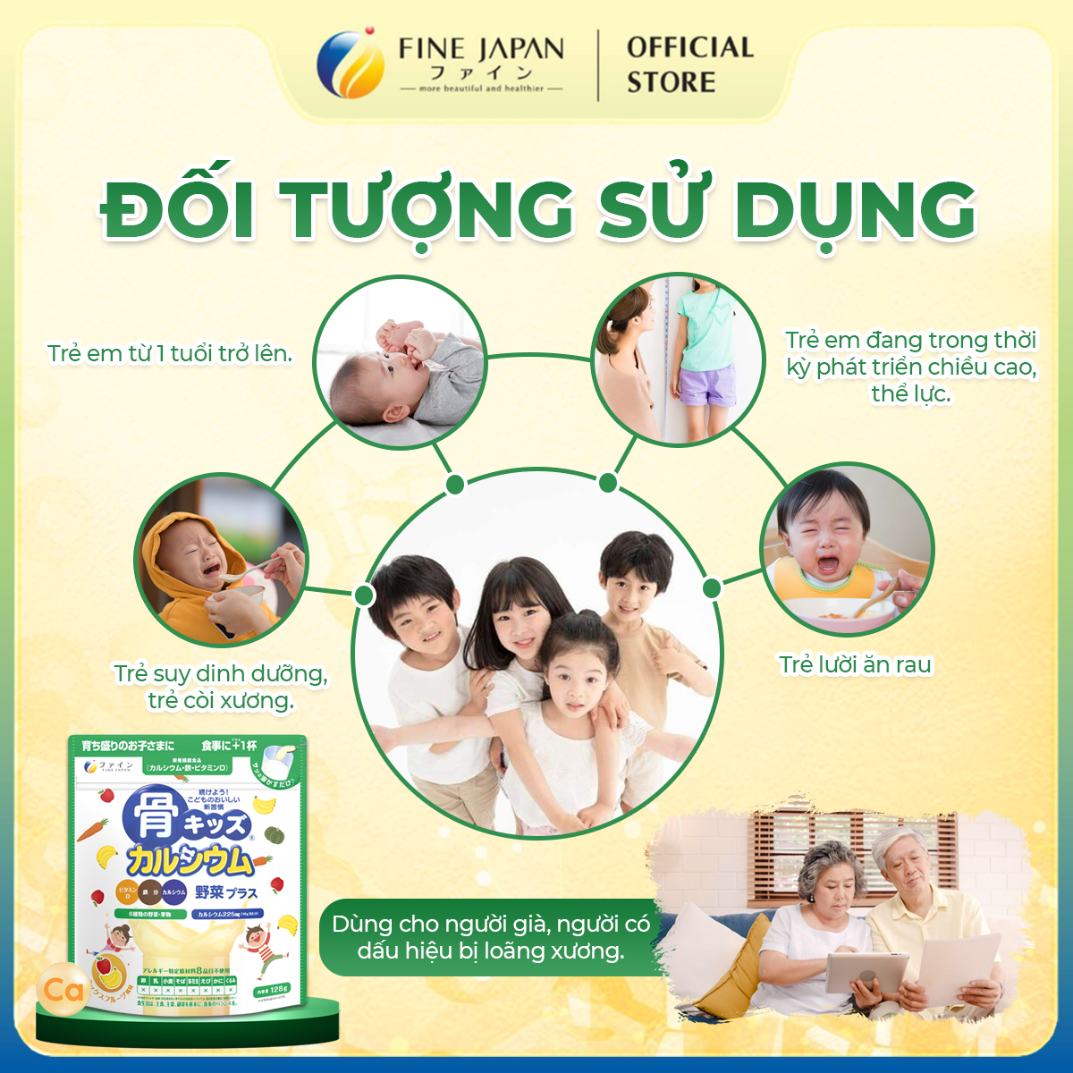 [Vị trái cây tổng hợp] Bột Canxi cá tuyết Bone's Calcium for Kids Vegetable Plus FINE JAPAN bổ sung Canxi & rau củ quả gói 128g Bone's Calcium for Kids Vegetable Plus là sản phẩm