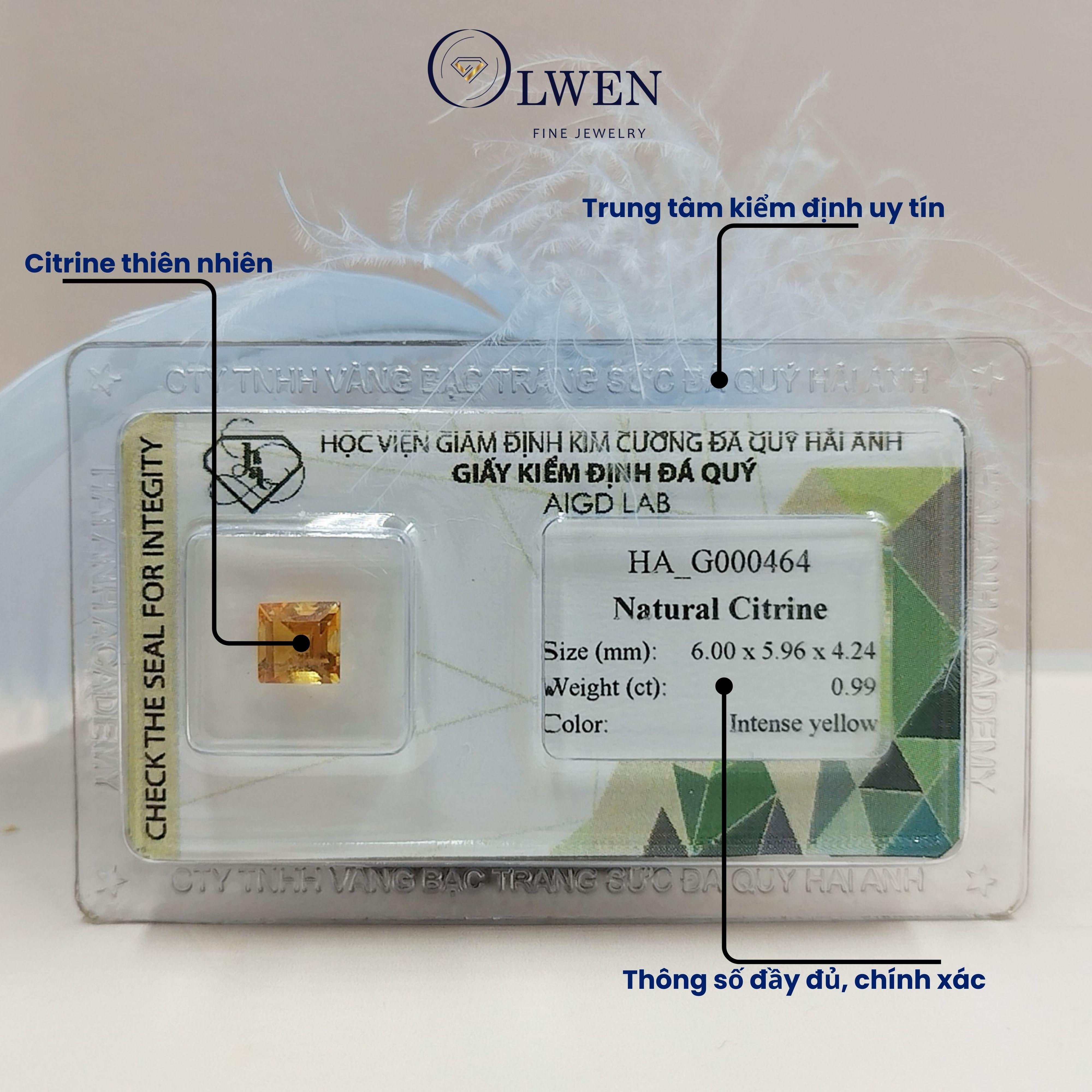 VIÊN ĐÁ THẠCH ANH VÀNG (CITRINE) THIÊN NHIÊN_HA-G000319 Tên sản phẩm: Viên đá thạch anh vàng thiên nhiên_HA-G000319, đá phong thủy. Kích thước: 7.42 x 9.39 x 5.30 mm Trọng lượng: 1.96cts Màu sắc: vàng