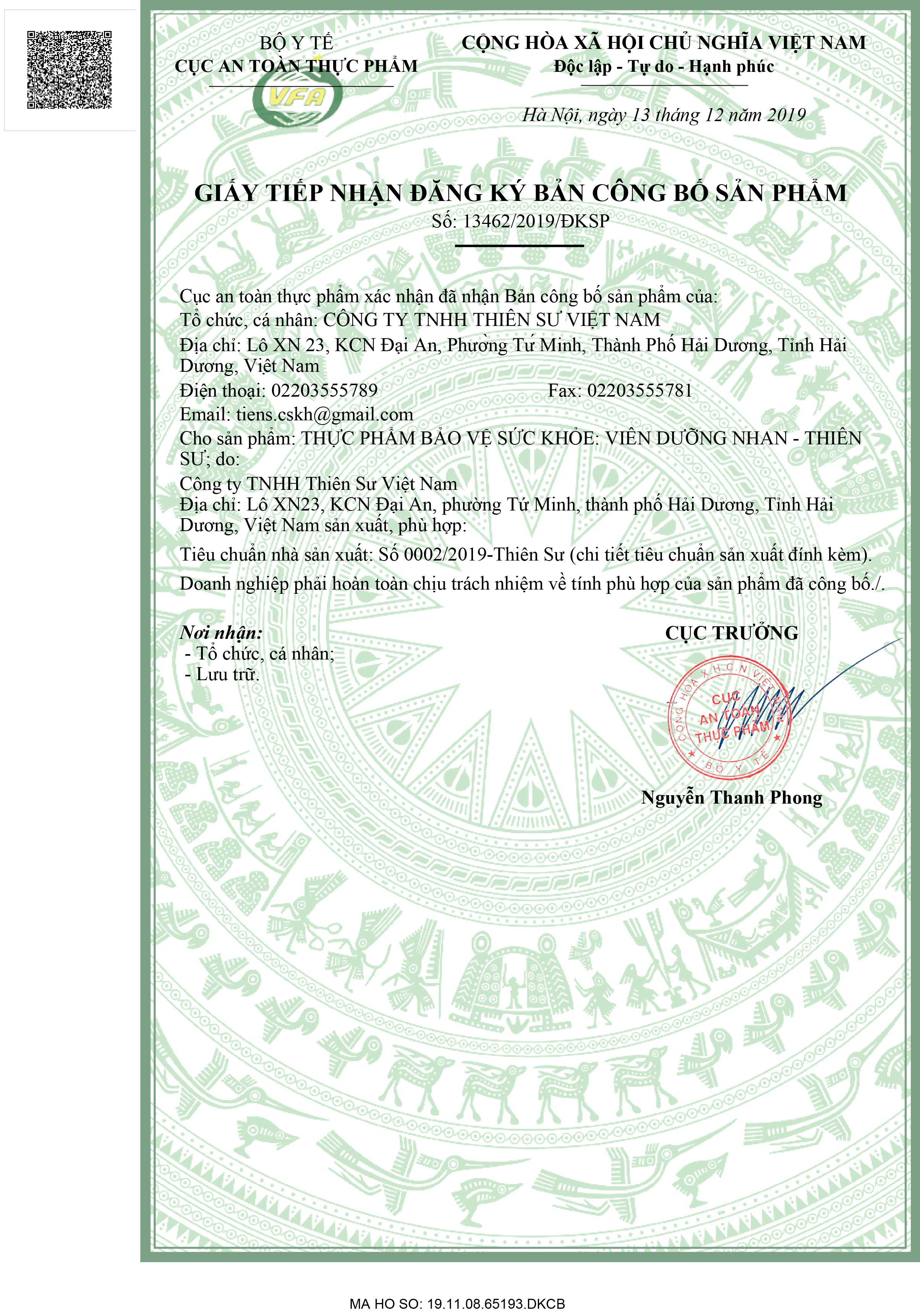 - Chiết xuất thảo mộc: Labisia Pumila (80mg), Quercus Infectoria (U sưng gỗ sồi) (80mg), Đương quy (70mg), Nhân sâm (70mg), Xuyên khung (50mg), Bạch thược ( 50mg), Thục địa (50mg), Ích mẫu (50mg). Vừa đủ 1 viên. Công dụng: Bổ huyết, tăng cường sức khỏe, tốt cho phụ nữ sau sinh. Đối tượng sử dụng: Người cần tăng cường sức khỏe, phụ nữ sau sinh cần hồi phục sức khỏe, phụ nữ trưởng thành cần tăng cường sức khỏe Cách dùng: Người lớn uống ngày 2 lần, mỗi lần 2 viên sau bữa ăn với nước ấm Bảo quản nơi khô ráo, thoáng mát, tránh ánh nắng Xuất xứ: Việt Nam Thực phẩm này không phải là thuốc và không có tác dụng thay thế thuốc chữa bệnh. Không sử dụng cho người mẫn cảm với bất kỳ thành phần nào của sản phẩm Không dùng cho phụ nữ có thai Không dùng cho trẻ em dưới 18 tuổi Phụ nữ đến tháng không nên sử dụng Số CBSP : 13462/2019/ĐKSP Sản phẩm của Tiens nhận được rất nhiều chứng nhận của Việt Nam và Quốc tế về chất lượng sản phẩm như : Hala , FDA của Hoa Kỳ, Chứng nhận doanh nghiệp công nghệ cao, chứng nhận hệ thống quản lý an toàn thực phẩ