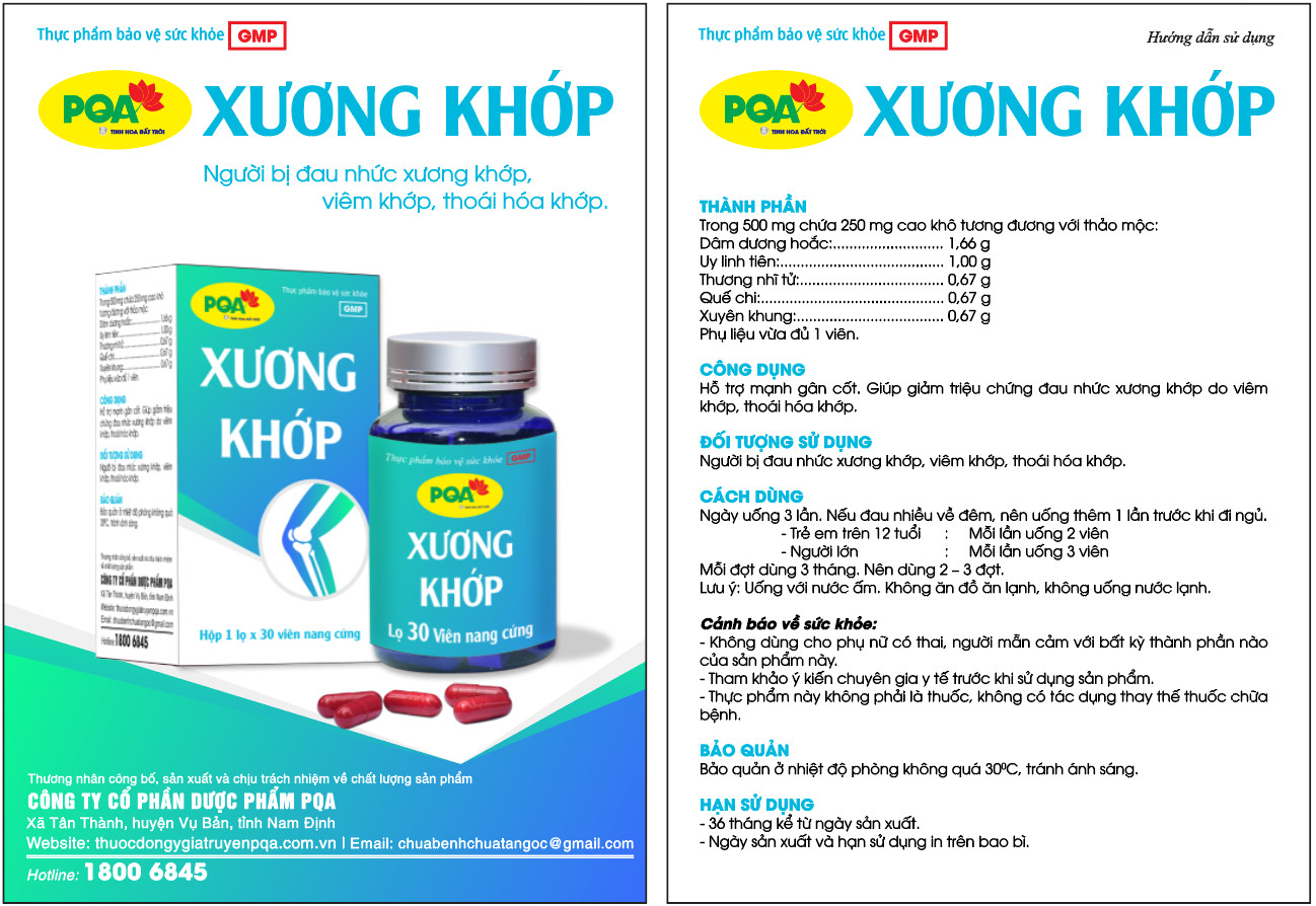 Viên nang PQA Xương Khớp hộp 100 viên là dược phẩm thảo dược cho người bị đau nhức xương khớp, viêm khớp, thoái hóa khớp, hỗ trợ mạnh gân cốt, giúp giảm triệu chứng đau nhức xương khớp do viêm khớp, thoái hóa khớp